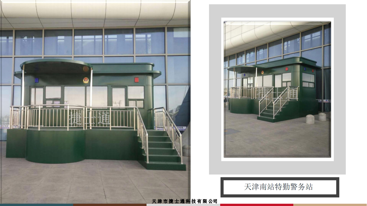 天津市捷士通科技有限公司從創(chuàng)建以來,一直潛心致力于崗?fù)さ脑煨蛣?chuàng)新、品質(zhì)的提升,短短幾年時(shí)間,成為了同行業(yè)的佼佼者。公司的高速發(fā)展,離不開公司高素質(zhì)的人才隊(duì)伍和先進(jìn)的經(jīng)營(yíng)管理模式。公司一向本著“質(zhì)量求生存,創(chuàng)新求發(fā)展”的精神,引進(jìn)國(guó)內(nèi)外先進(jìn)的機(jī)械設(shè)備,應(yīng)用新技術(shù)、新工藝、新材料注重質(zhì)量管理體系的完善,培養(yǎng)了大批經(jīng)驗(yàn)豐富的技術(shù)人員,以“科學(xué)、嚴(yán)謹(jǐn)、務(wù)實(shí)”的經(jīng)驗(yàn)豐富精神,生產(chǎn)出各種不同的檔次的“質(zhì)優(yōu)、價(jià)廉、新穎”產(chǎn)品以滿足各類客戶的不同需求。 通過各部門的效率高 協(xié)作,公司力求從產(chǎn)品生產(chǎn)到銷售的每一細(xì)節(jié)都做到精益求精,以實(shí)現(xiàn)公司效益與客戶利益的雙贏共贏。 天津市捷士通科技有限公司自建立以來,以其過硬的產(chǎn)品質(zhì)量、時(shí)尚典雅的外觀設(shè)計(jì)、合理的價(jià)格、健全的營(yíng)銷網(wǎng)絡(luò)、優(yōu)良的售后服務(wù)贏得了廣大客戶的信任和青睞。 捷士通崗?fù)ひ猿霰姷钠焚|(zhì),超卓的性能和優(yōu)雅的外觀受到廣大消費(fèi)者的追捧,成為黨政機(jī)關(guān)、企事業(yè)單位、場(chǎng)館、bu隊(duì) 、高價(jià)住宅區(qū)、停車場(chǎng)、售賣場(chǎng)所、旅游景區(qū)的優(yōu)選 產(chǎn)品.中國(guó)石油、天津西站、天津東站、天津市容委、天津建筑設(shè)計(jì)院、天津南開大學(xué)、天津(水滴)體育館、正信集團(tuán)、寧發(fā)集團(tuán)、濱海旅游區(qū)、游輪母港。 天安門服務(wù)亭、兩會(huì)安檢亭、朱日和軍演防彈崗?fù)?、央視朗讀亭、碧桂園地產(chǎn)、華夏幸福地產(chǎn)、北京世園會(huì)志愿者服務(wù)亭等等都是問我們的客戶。